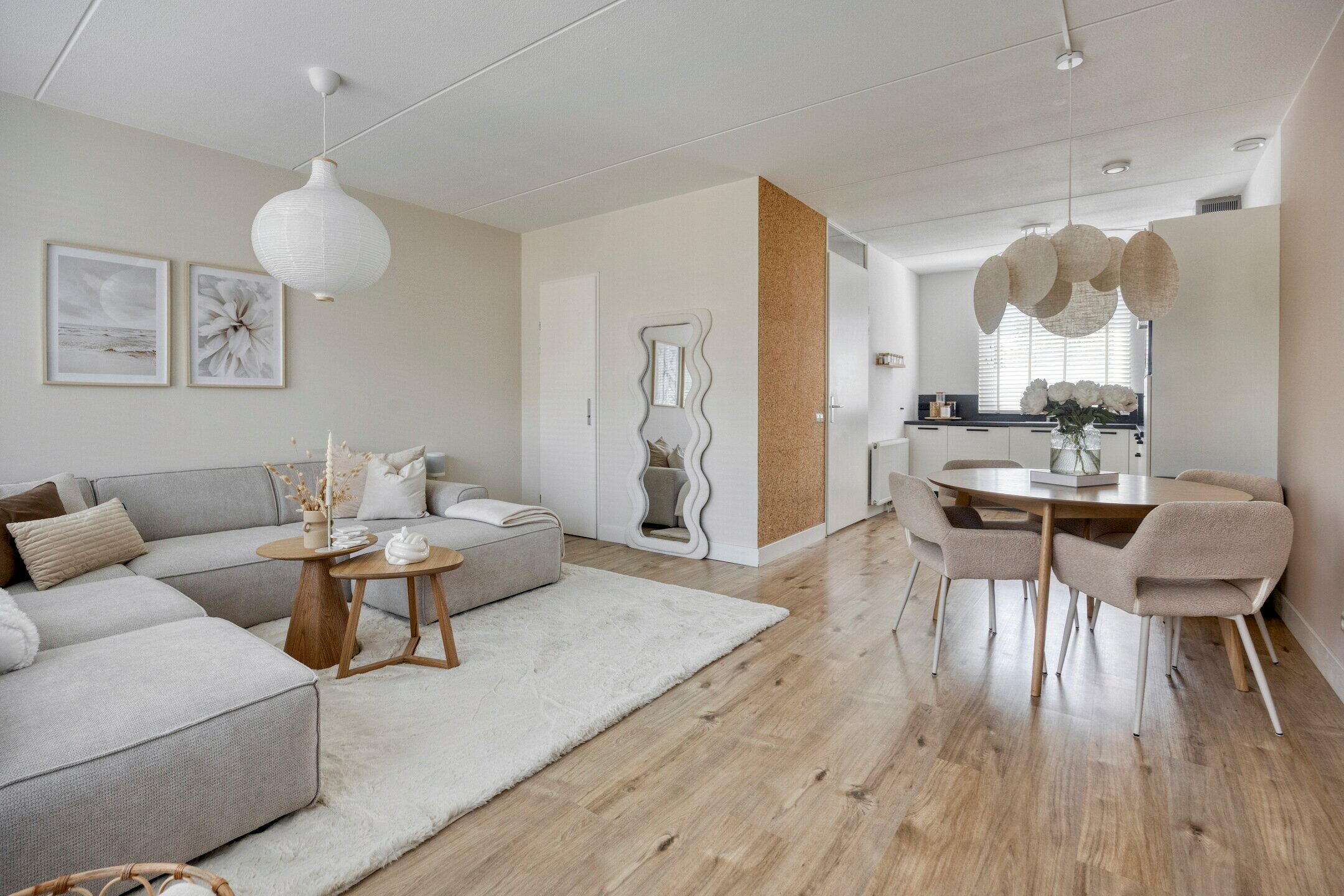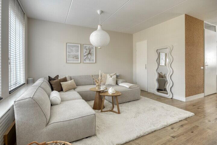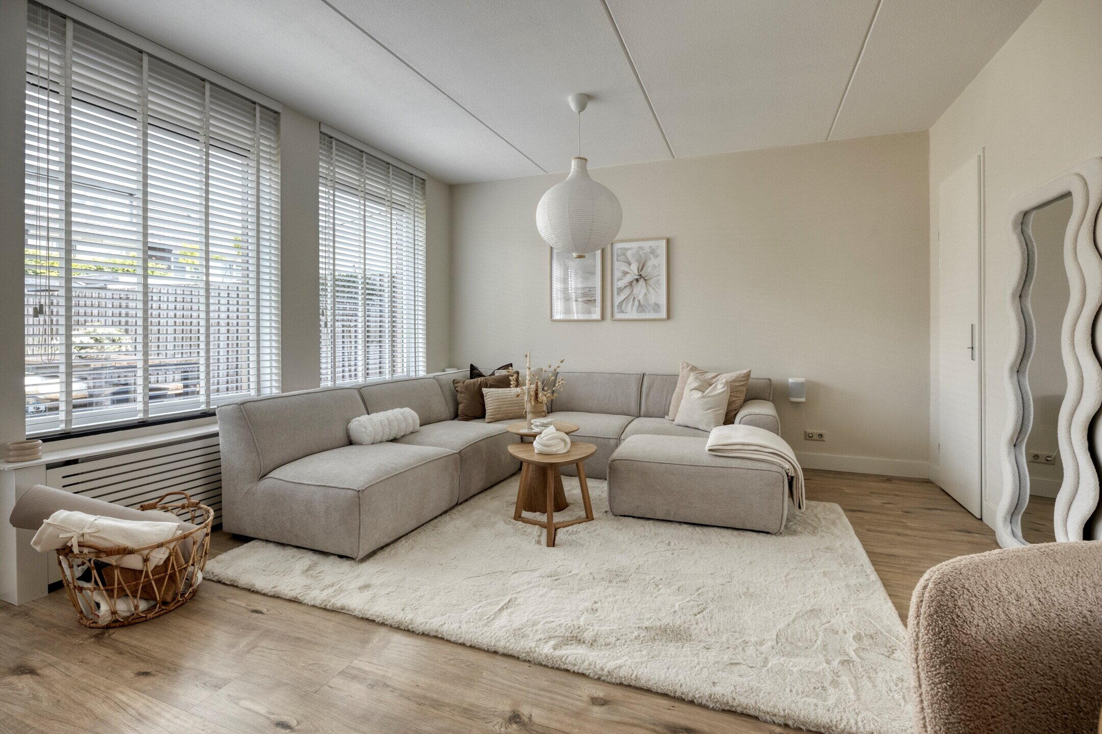 - Eenheid in kleurgebruik en natuurlijke materialen zorgt voor een rustige en harmonieuze sfeer